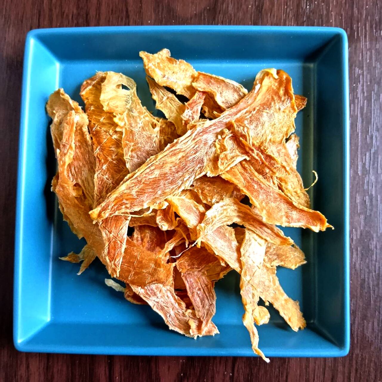 国産の上質な鶏ささみを、加工職人によって独自の技術で丁寧に薄切りにした後、低温風でじっくりローストして仕上げた、ササミジャーキー。