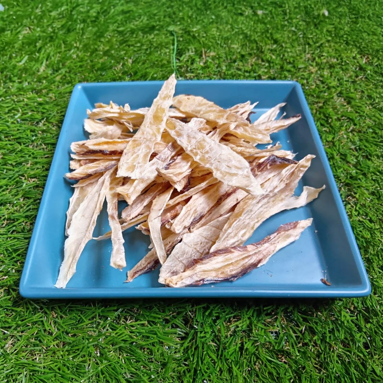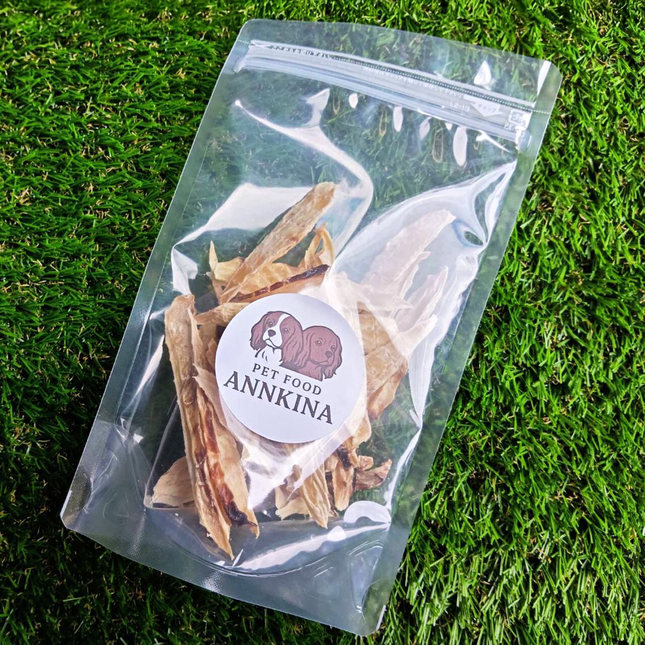 瀬戸内海産の新鮮な天然真鯛をカットした後、特殊製法で薄くし、じっくり時間をかけてドライ加工しました。軽いサクサクした食感のため、小型犬でも食べやすい商品です。