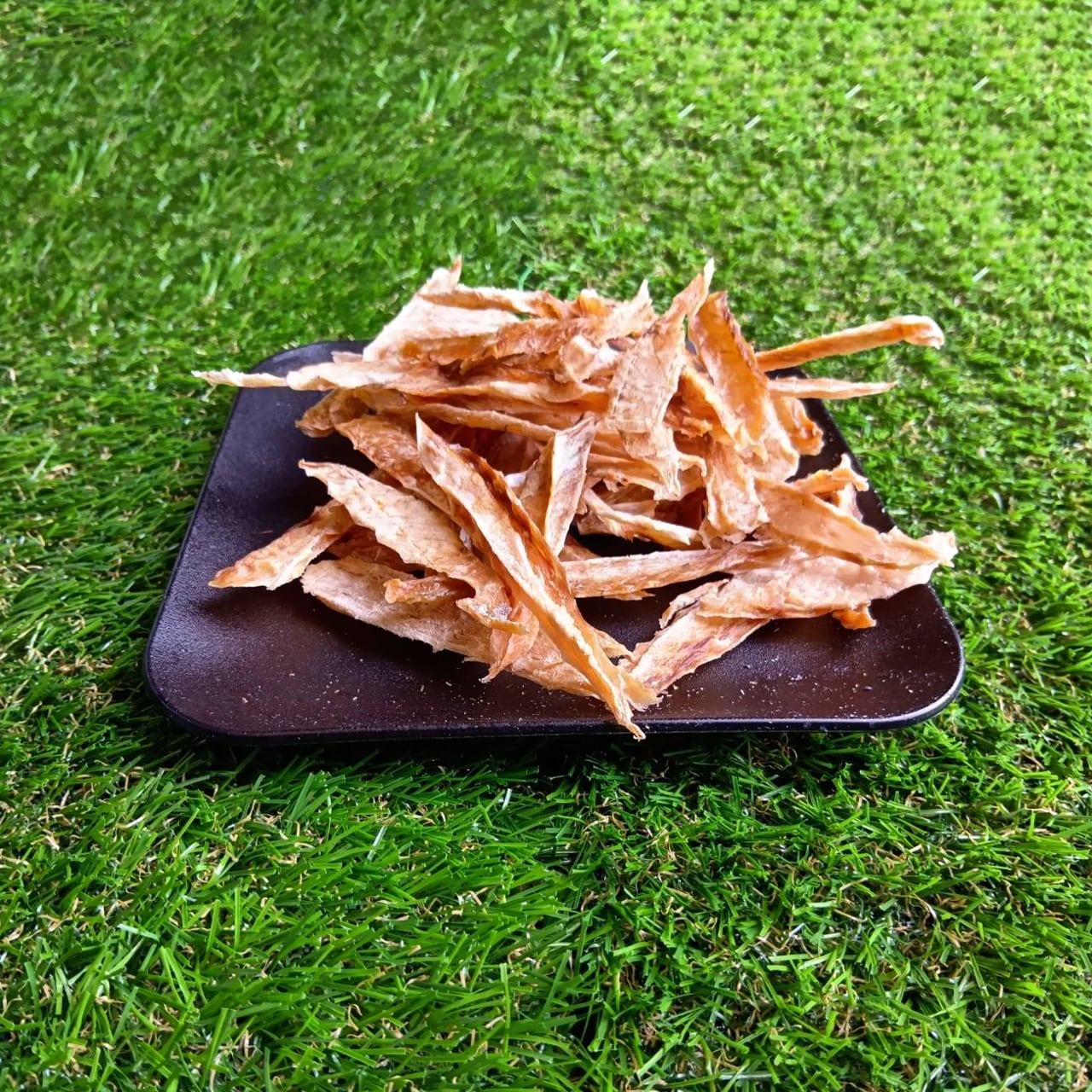 新鮮なスズキをカットした後、特殊製法で薄くし、じっくり時間をかけてドライ加工しました。軽いサクサクした食感のため、小型犬でも食べやすい商品です。