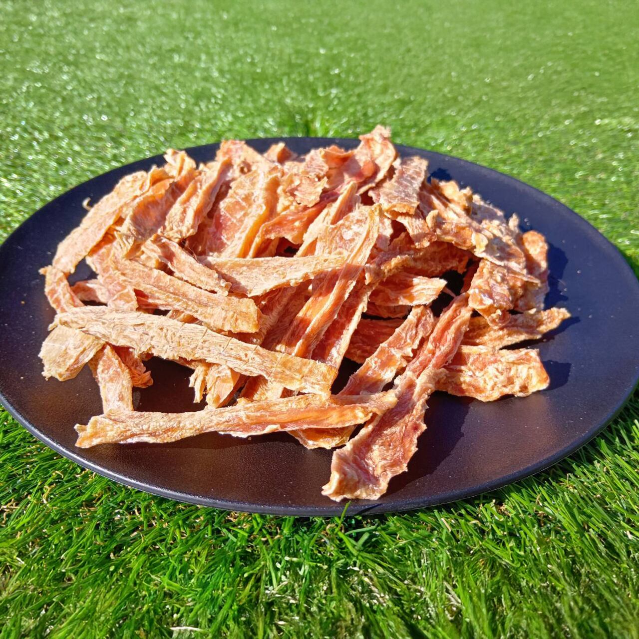 厚切りササミ肉を長時間かけて仕上げてるので小型犬でも問題なく食べれます。